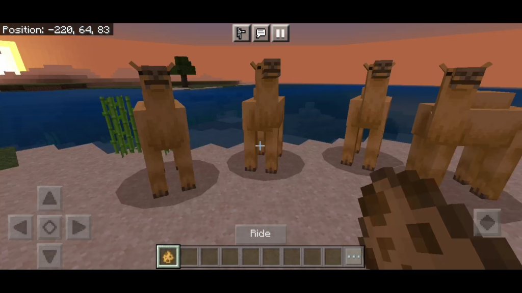 Add new touch controls. To use it first touch on touch button then find the select control mode and click on this than your choice you can select any controls.Add new characters in the game to select the character. On your mobile data then go to dress room and select an empty character than choose your starting the character.Add new mob camel this is very useful in desert area always you attach with their chest.Add new sign board in a game.